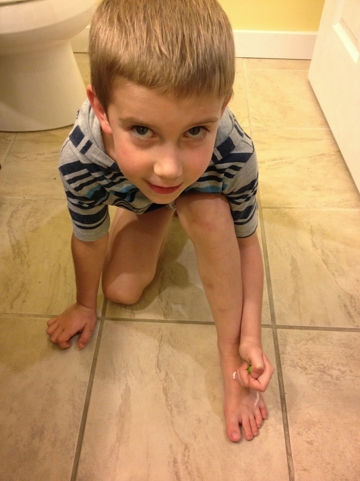 A couple days later he was in my bathroom with a cut on his foot. The perfect opportunity to use one of these amazing inventions! Now I have to hide them.